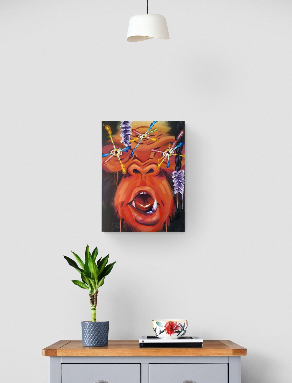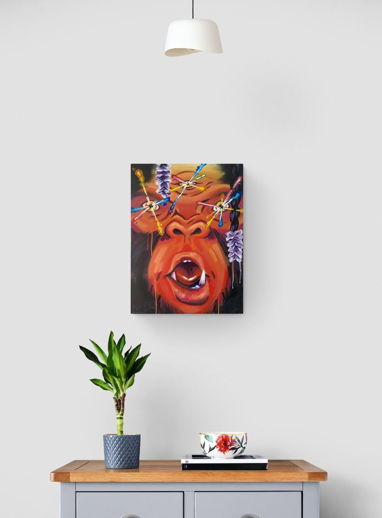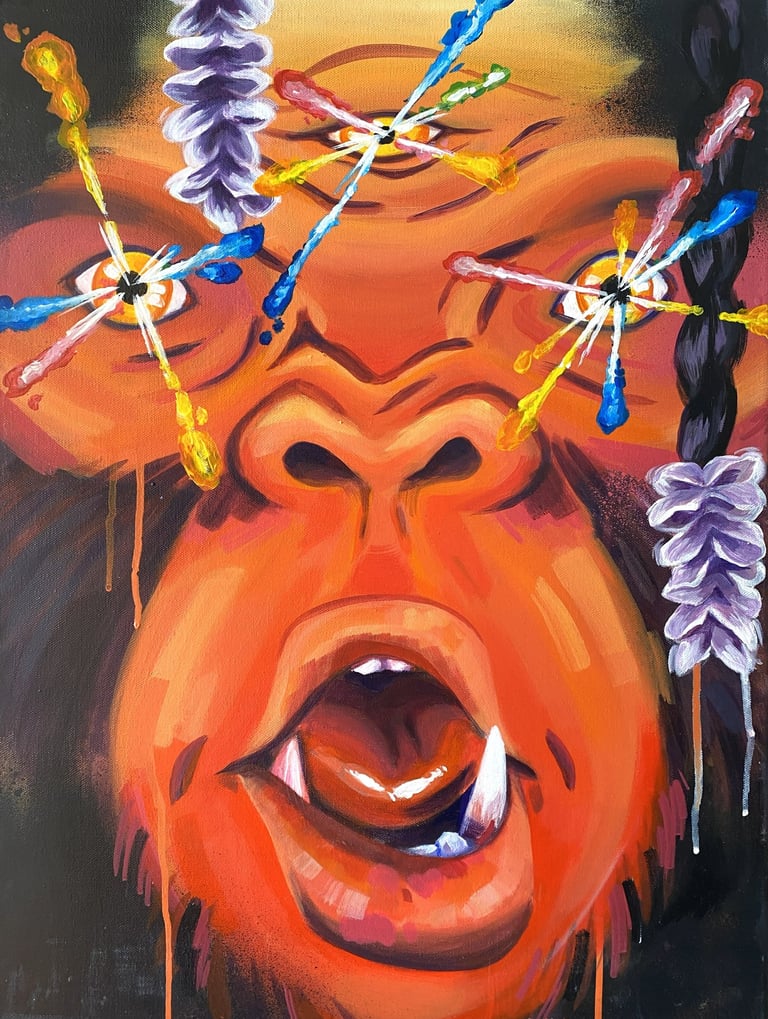 An explosion of colours, this painting speaks of the primitive nature of humans, who are at the same time highly conscious beings, making us the walking contradiction that we are.