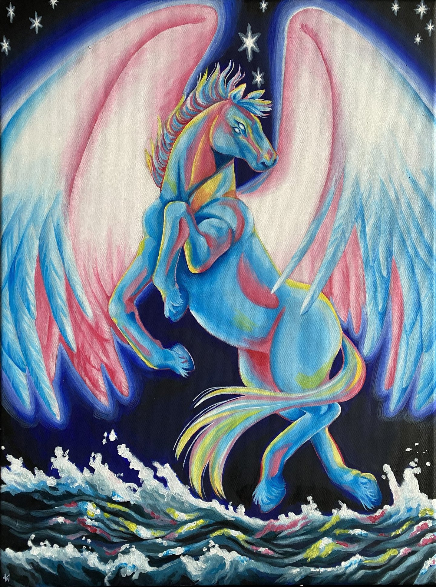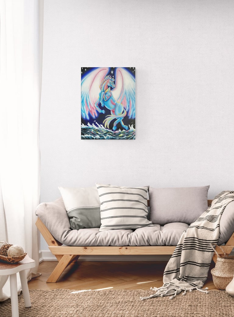 Inspired by the unlimited potential of the human being, I created this marvelous pegasus flying above the sea on a sky full of stars.